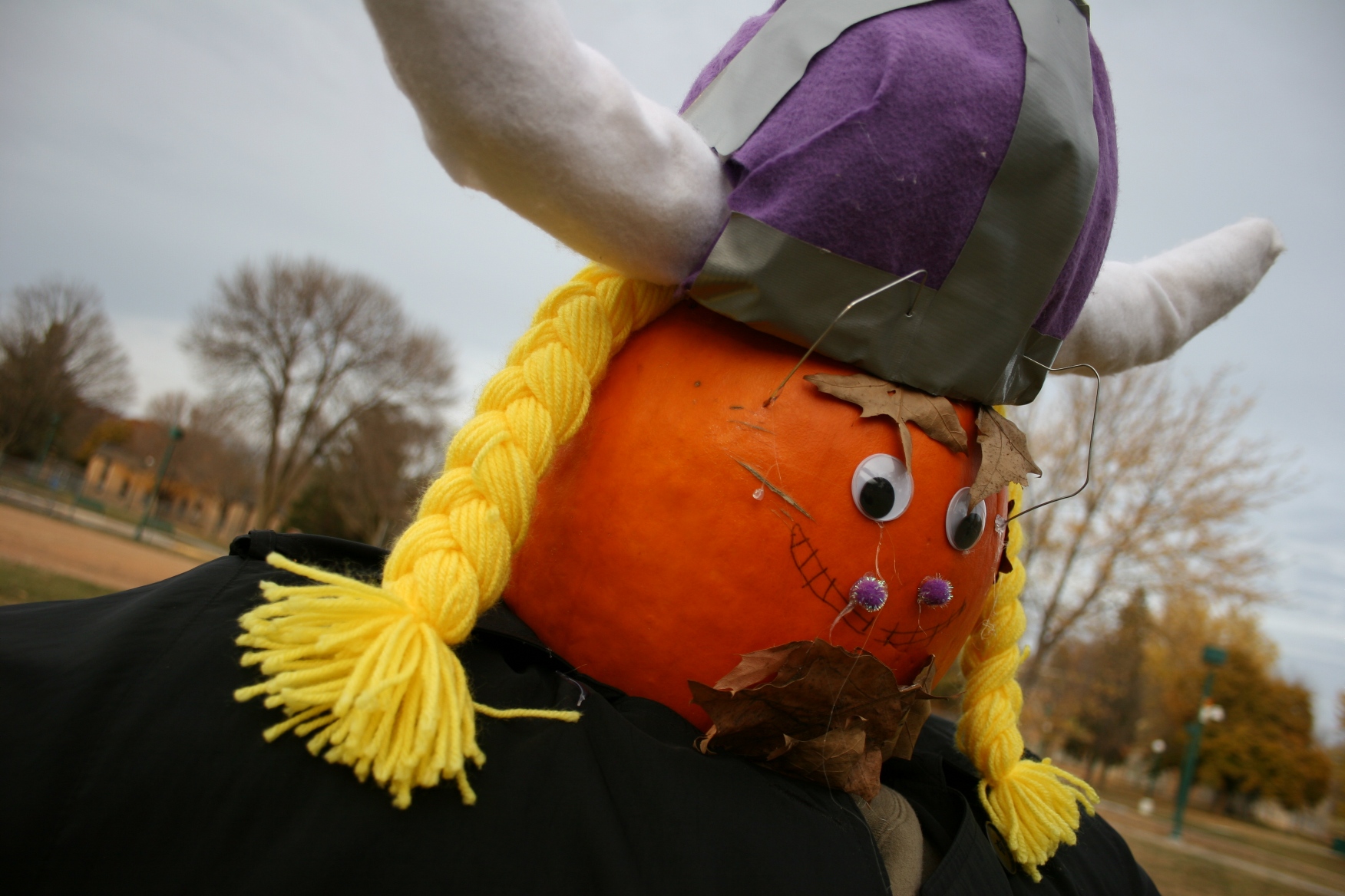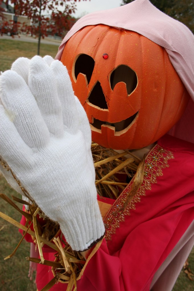 FYI: These scarecrows are part of a Scarecrow Contest at the 100 Ladies and Gentlemen Craft Sale. That sale, located at 45986 Highway 56 just off Minnesota Highway 60 in Kenyon, continues from 10 a.m. – 8 p.m. November 3 -6 and November 10 -13. All items are handcrafted.