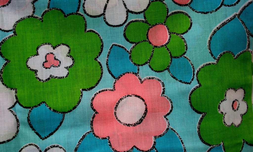 I haven’t touched my sewing machine in years. For a moment I thought perhaps I should pull it out of storage and resume a creative activity I once loved. Spools of colorful Coats & Clark thread had me visually pairing thread with fabric. Psychedelic prints had me visually pinning and cutting patterns for a seventies fashion statement. Oh, the memories.