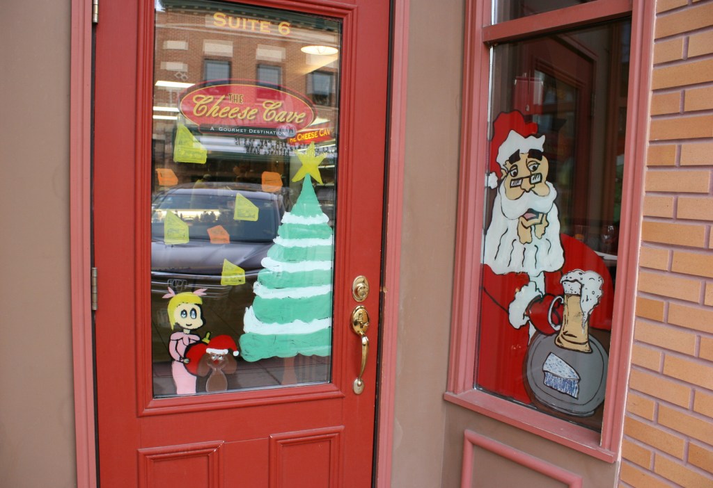 But I found my favorite display, featuring Buddy the Elf, at The Oasis Cafe. A personal story drew me to stand in front of the window with a Buddy cut-out hovering over a plate of spaghetti and assorted candy, candy canes, candy corn and syrup. This, if you’ve seen the movie “Elf,” denotes Buddy’s definition of the four basic food groups. My son loved the “Elf” film so much that I gifted him with syrup and candy corn one Christmas because, why not have a little fun with a nine-year-old? Now, all these years later, I photographed The Oasis “Elf” scene and texted it to my son, who is all grown up and living in Boston.