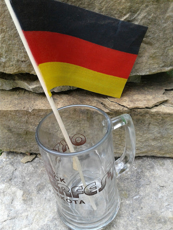 The thrift shop Oktoberfest bier mug from Bismarck is perfect given the Helblings settled (and still mostly live) in that region of North Dakota. I found the last remaining 99-cent cotton German flag at the Guten Tag Haus.