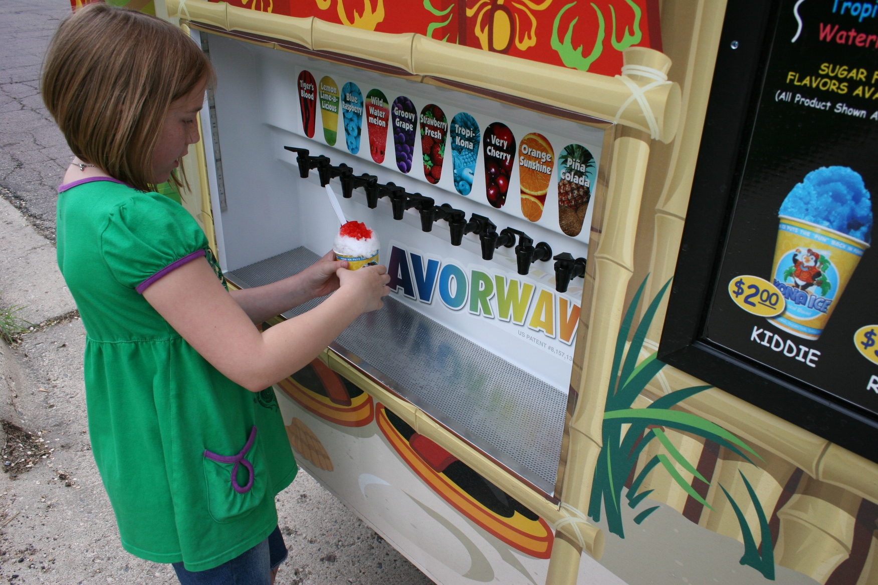 Not only that, Kona Ice features a patented system, Flavorwave, in which customers can dispense the fruit flavor(s) of choice onto the shaved ice. Thirty other special flavors are available upon request and prepared by Todd.
