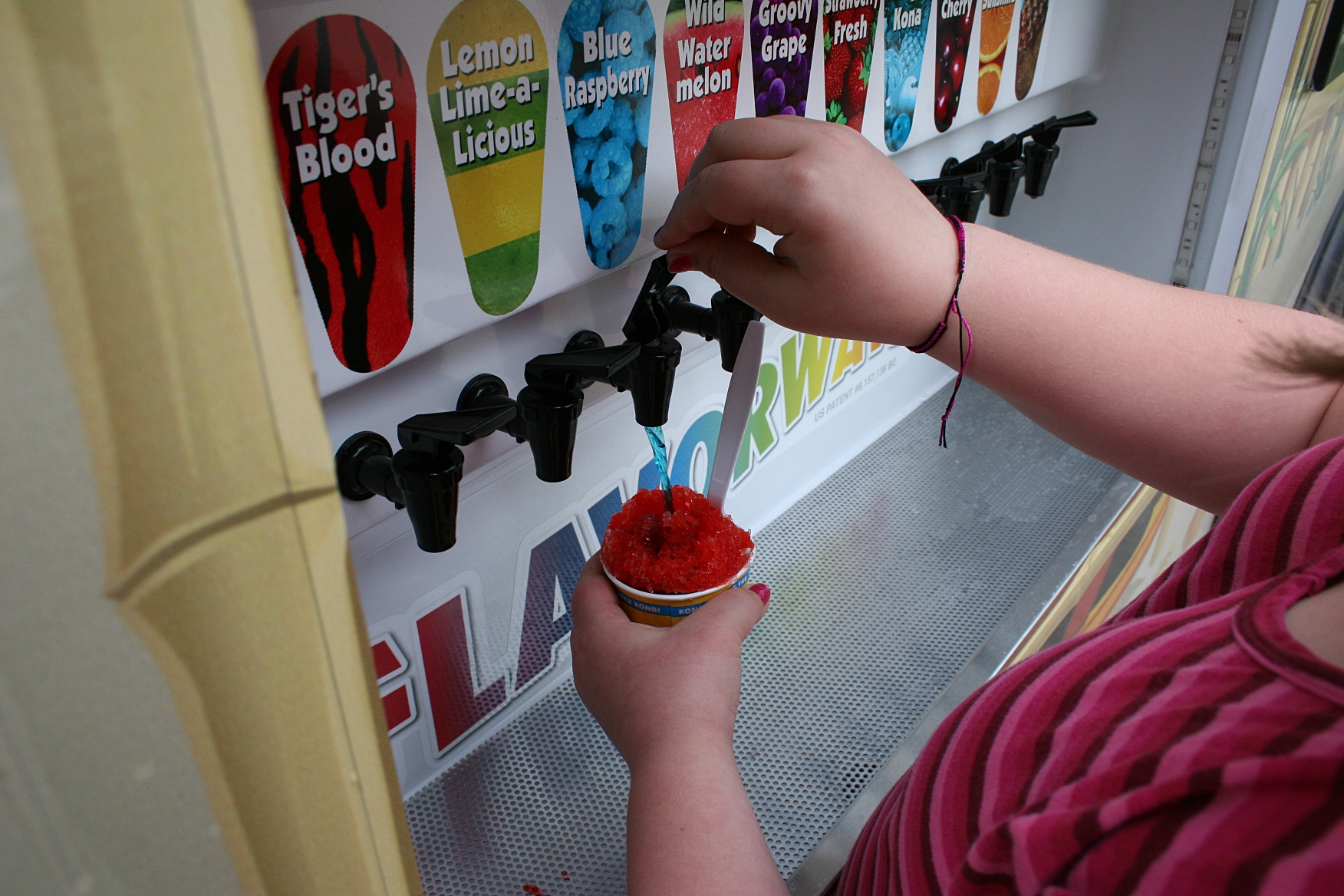 Todd advises customers to count to three as they dispense flavor onto the ice, to get the right amount of flavoring.