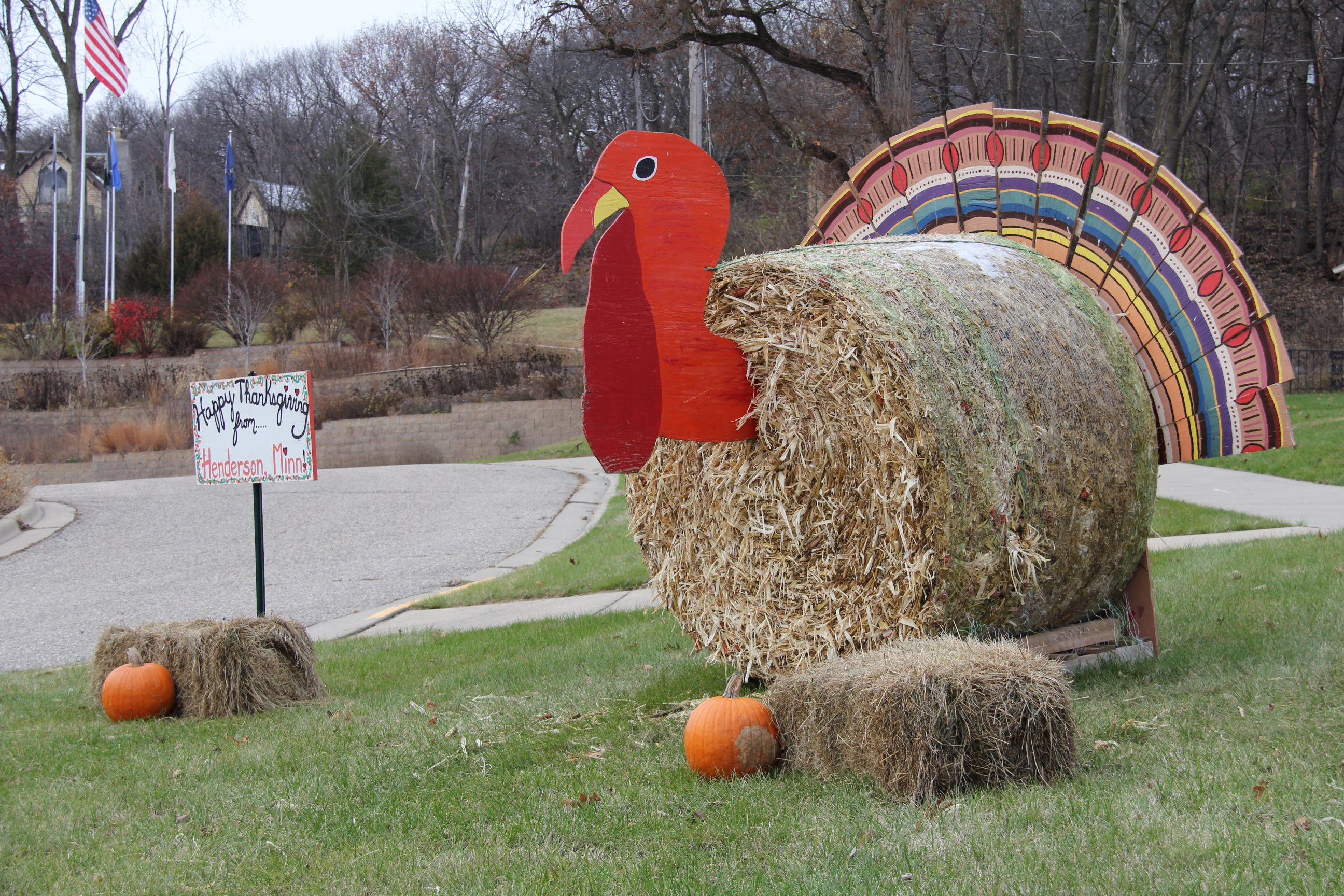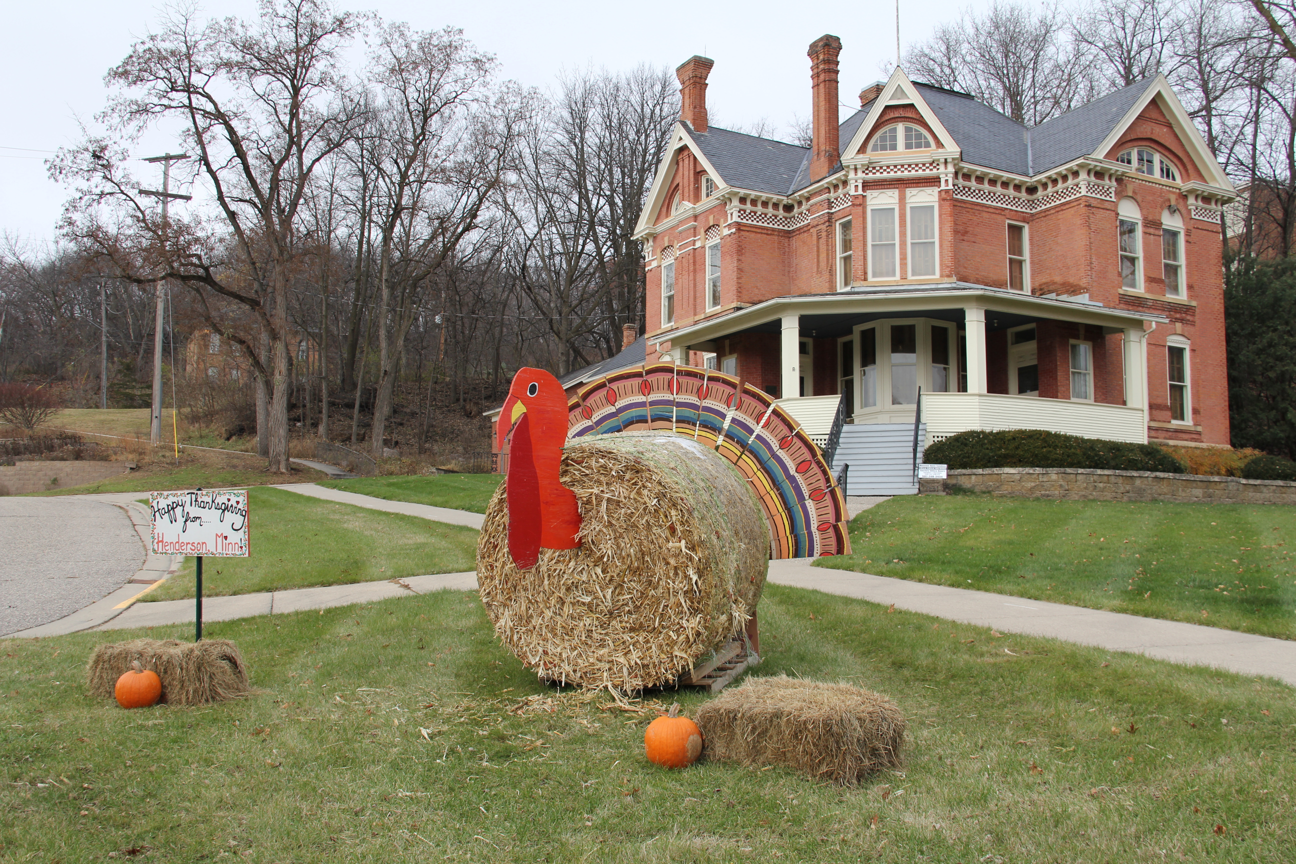 I appreciate that someone took the time to create this turkey with plywood, paint and a single large bale. The turkey truly grabs your attention on the west end of Henderson, just below the hill from the Sibley County Historical Society and Museum.