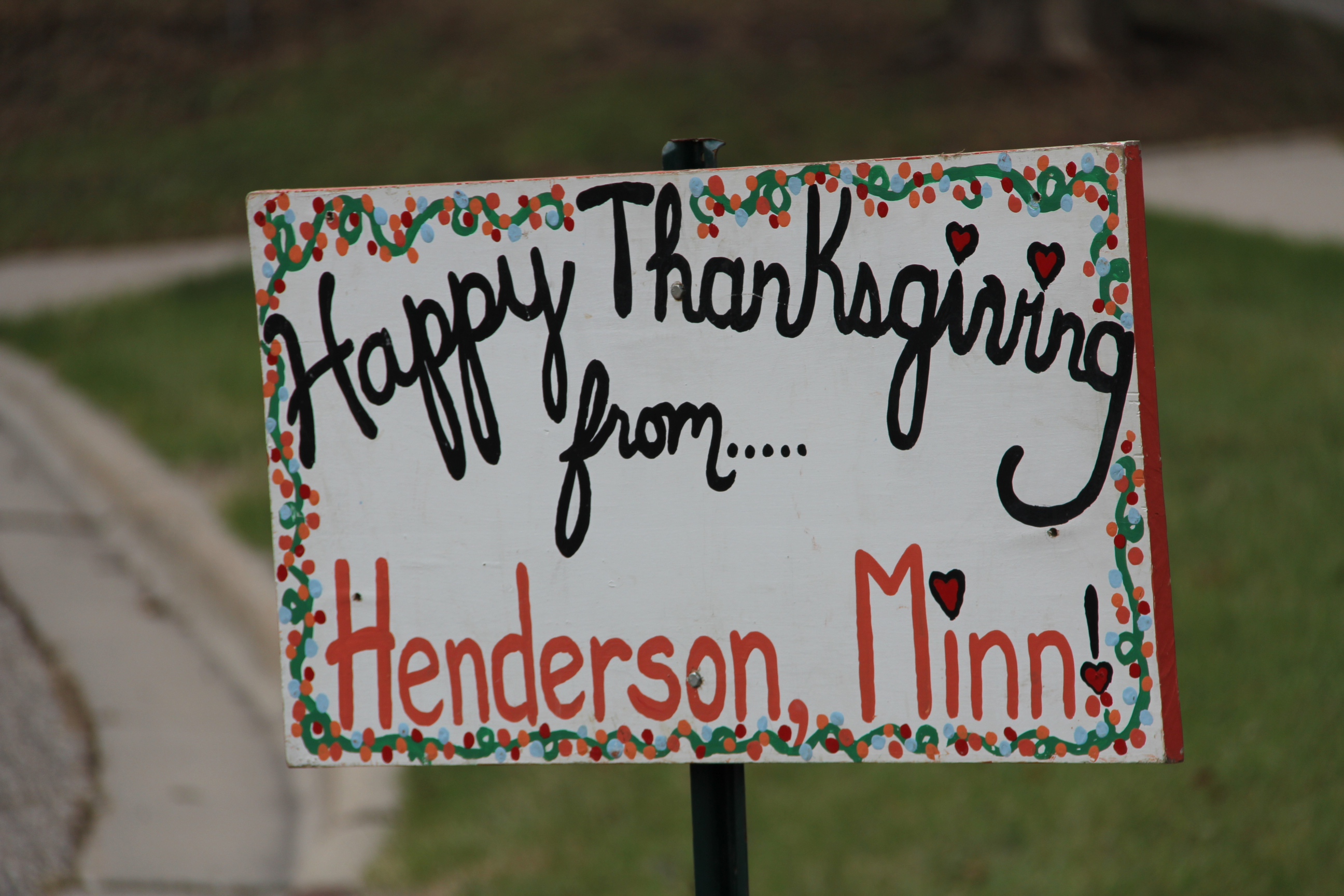 The turkey and “Happy Thanksgiving from Henderson Minn!”, complete with red hearts dotting the “i’s” and marking the exclamation point, made me smile. And that’s a good thing. I appreciate things that make me smile.