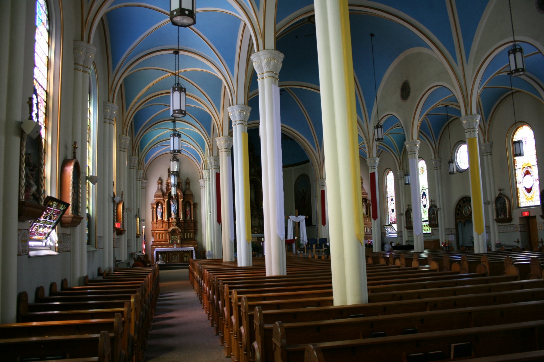 The side aisle on the left leads to an ornate altar in St. Mary's which is on the National Register of Historic Places.