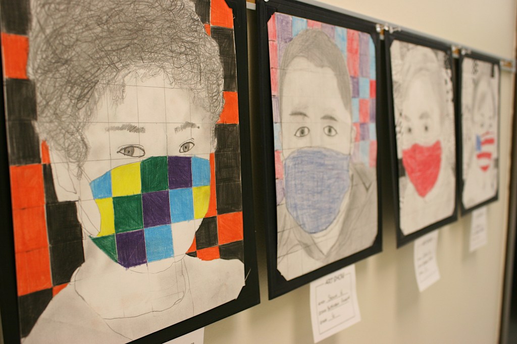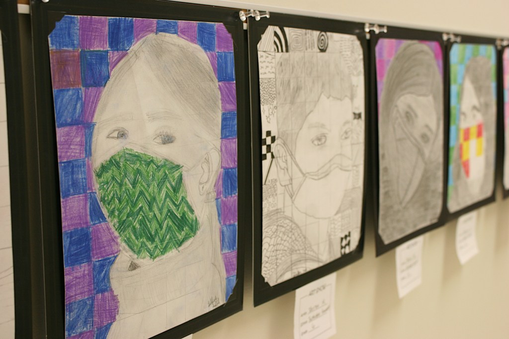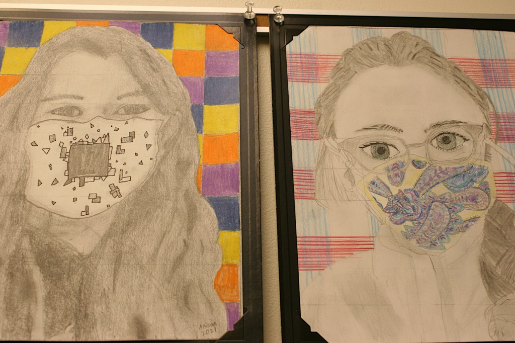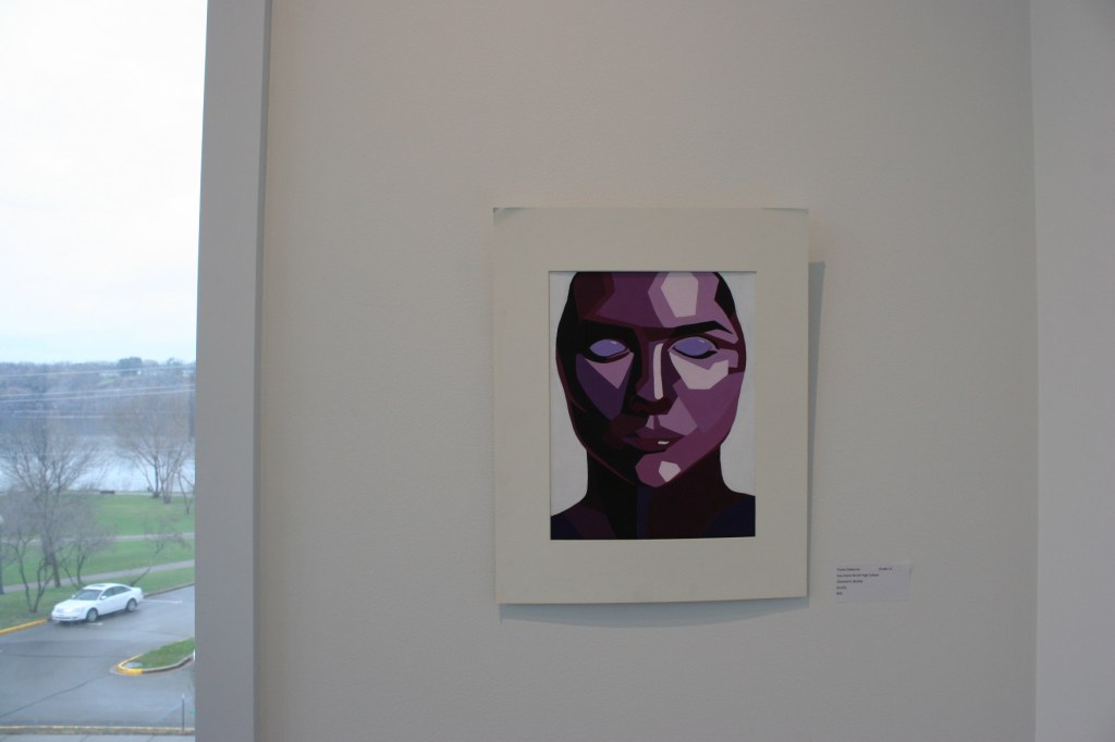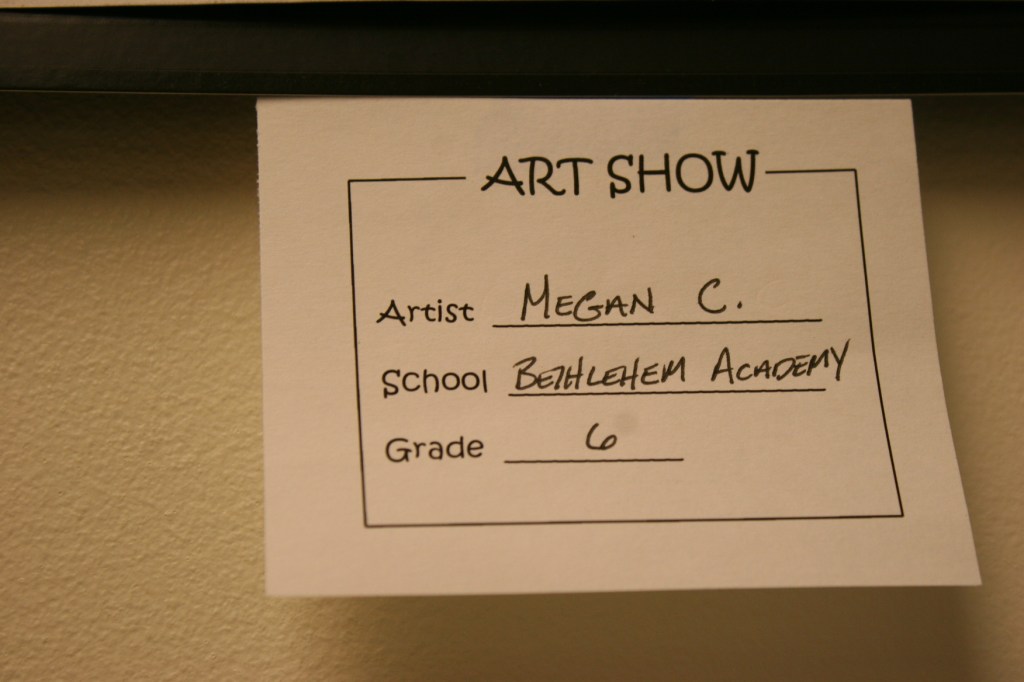 When I walked over to view the wall gallery of Bethlehem Academy student art, I wondered about the stories behind their creations. What of the untitled piece featuring three masks? What of the colorful abstract “Crazy Minds”? What of “St. Olga of Kiev”? Or “Wóohitike ‘Courage’”? I reacted to each. I thought of the masks we all wear, of mental health, of the war in Ukraine, of Indigenous peoples.