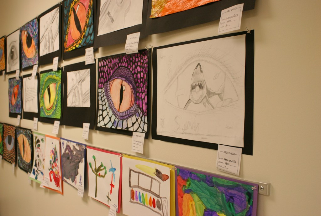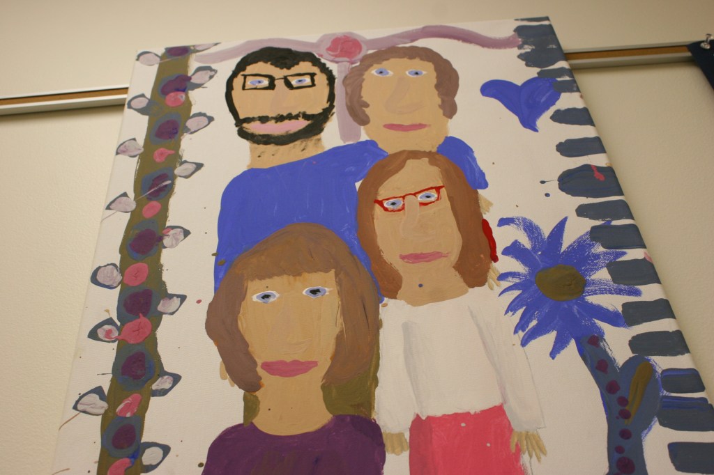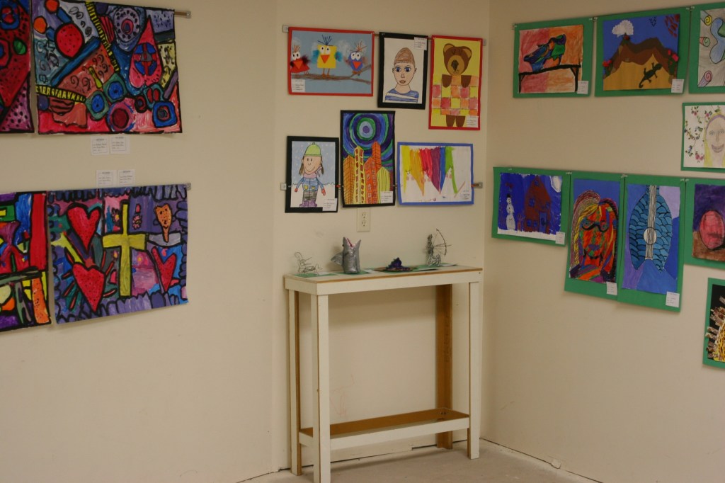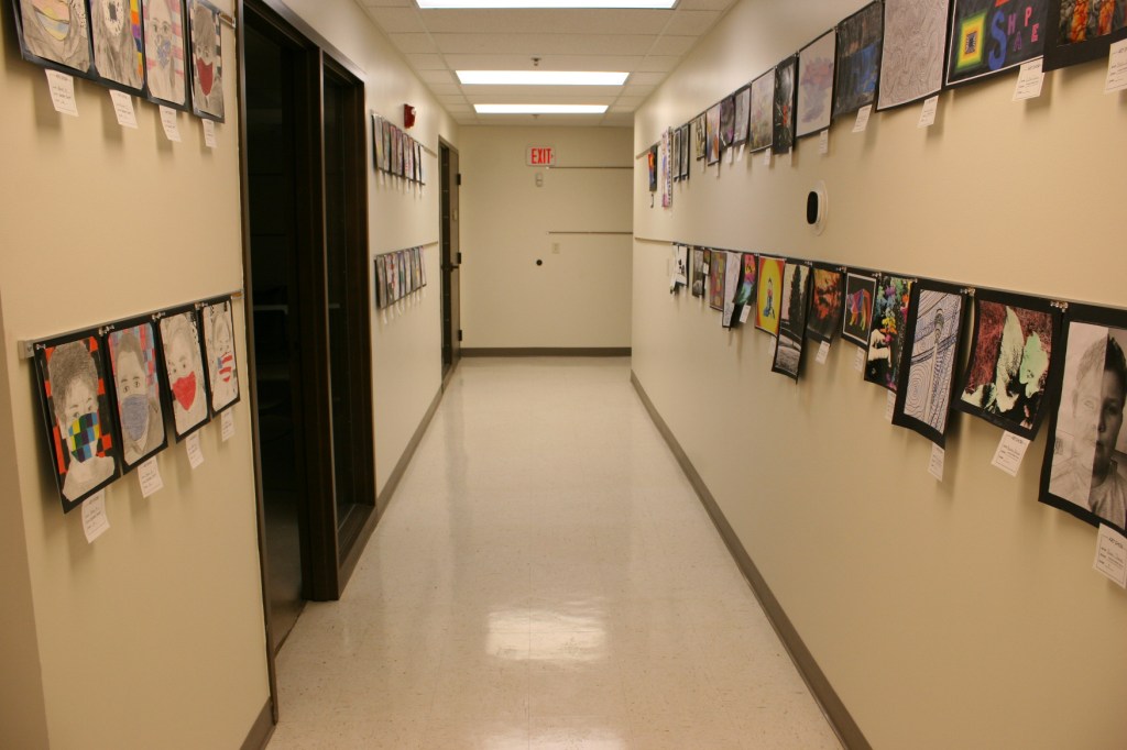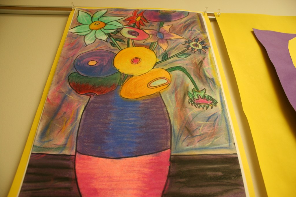 When I walked over to view the wall gallery of Bethlehem Academy student art, I wondered about the stories behind their creations. What of the untitled piece featuring three masks? What of the colorful abstract “Crazy Minds”? What of “St. Olga of Kiev”? Or “Wóohitike ‘Courage’”? I reacted to each. I thought of the masks we all wear, of mental health, of the war in Ukraine, of Indigenous peoples.