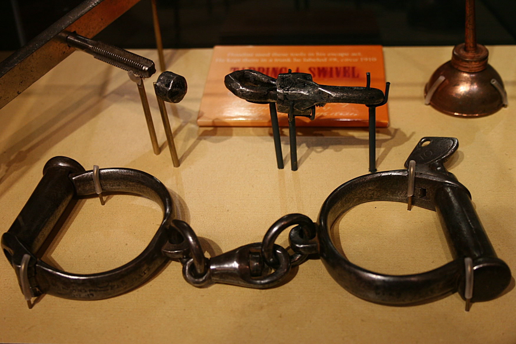 The museum collection includes artifacts gifted by an escape artist protege of Houdini’s escape artist brother, Theo. Sort of a tongue twister sentence there, I know. Some of Houdini’s tools of the trade seem rather archaic, almost barbaric, in a clanking metal and chains sort of way. But given the time period, you would not expect sleek and shiny.