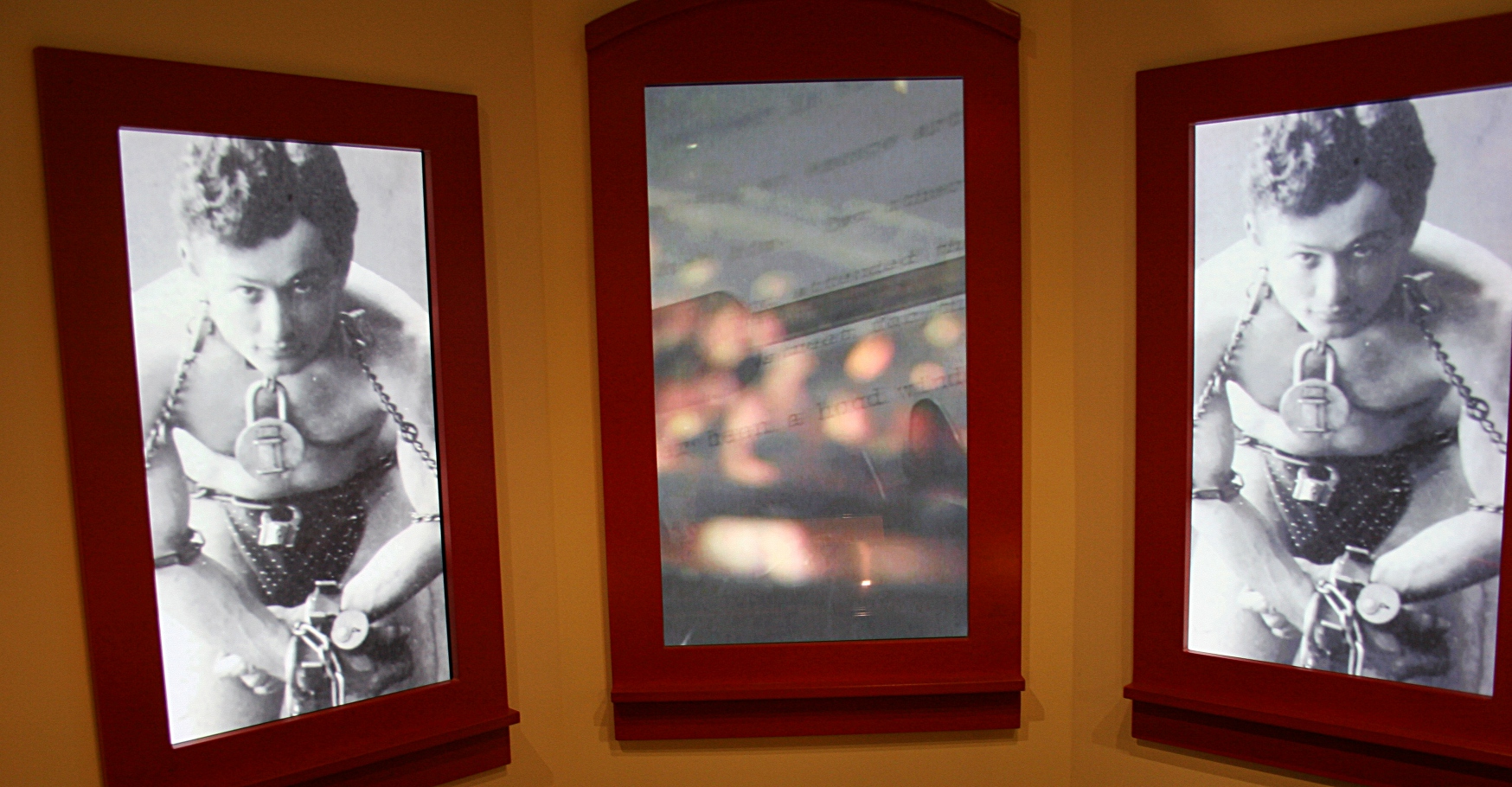 The circus wagon in the exhibit is a nod to Houdini’s circus association. He first performed for a neighborhood children’s circus as tight roper walker “Prince of the Air.”