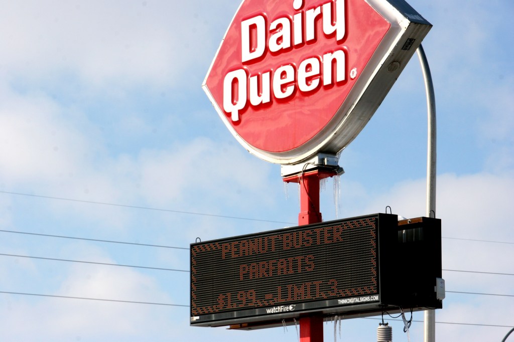 A friendly voice greeted us over the intercom as Randy ordered two Peanut Buster Parfaits. “We’re out of peanuts,” the teen on the other end told us. “You can substitute something else.”