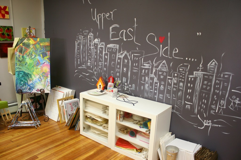 The Upper East Side mural, a project of owner Suzanne Schwichtenberg and Jarvis, is more modern and graphic with strong lines. Less detailed. Bold. With unexpected pops of color. I find the zipper painted into the mural to be especially creative—the unzipping of history, of stories, of past and present. The mural invites introspection rather than simple reflection on an historic place or memory.