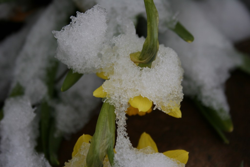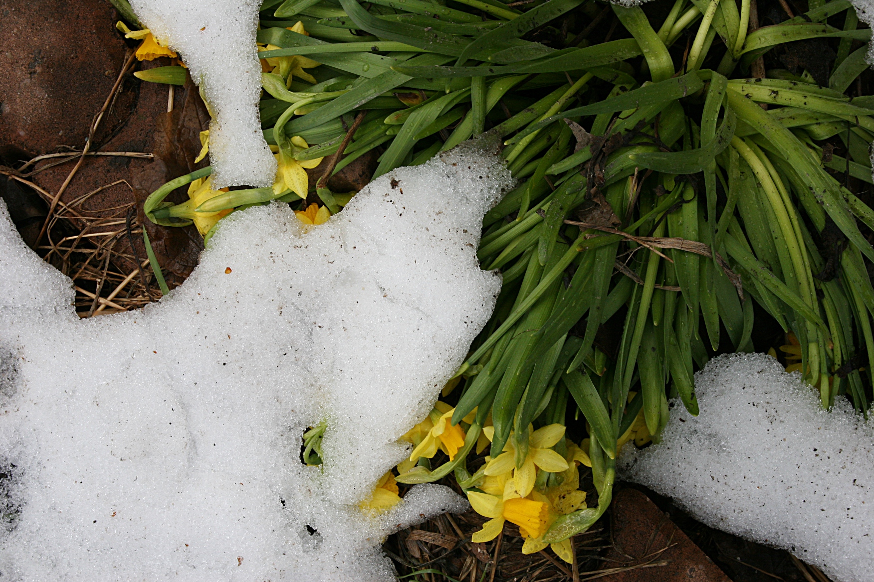 A few days ago I intended to photograph my daffodils, but, of course, I didnt. Now they are drooping in the snow.