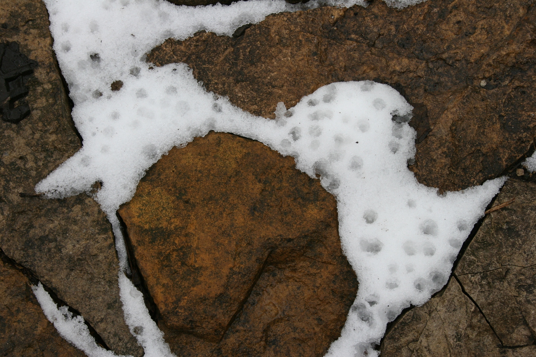 Saturday morning I followed the limestone path through my backyard to check on the flowers that had already erupted. I paused to photograph the walkway. The circles, created by snow dripping from tree branches, made an interesting pattern. Faribault received 1 1/2 inches of snow overnight Friday into Saturday morning.