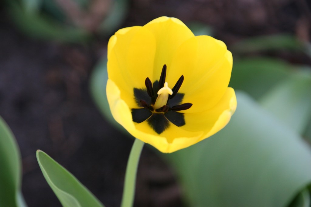 A week after receiving a surprise cluster of bulbs from my blogger friend Paula in the Netherlands, I now have a flower pot of wine-hued tulips in bloom and yellow ones about to open. I’d wondered at the color and that proved part of the fun, waiting to see.
