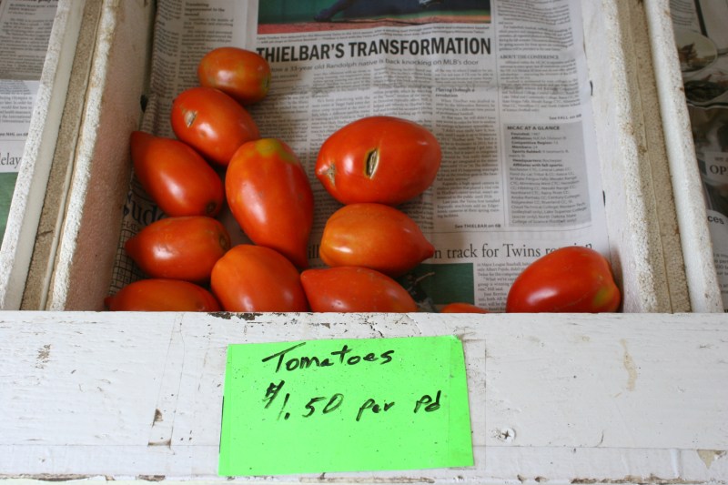 Randy bagged our six ears of sweetcorn while I chose two tomatoes. He paid. And then we exited Mark’s Fresh Veggies Stand, grateful for gardeners like Mark who provide us with fresh seasonal vegetables here in southern Minnesota.