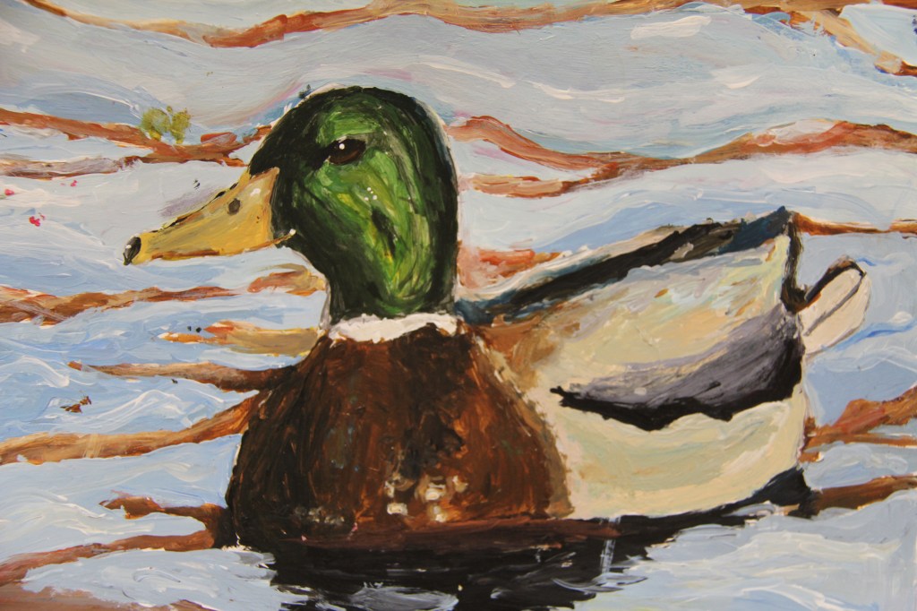 Fakler shows her love for animals in vivid animal portraits done in acrylic and clay. Her art is signature recognizable to me. I’ve often thought Fakler’s colorful animals would be perfect in a children’s picture book or splashed upon a tee shirt. They always make me feel happy.