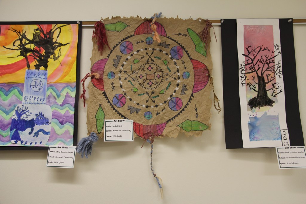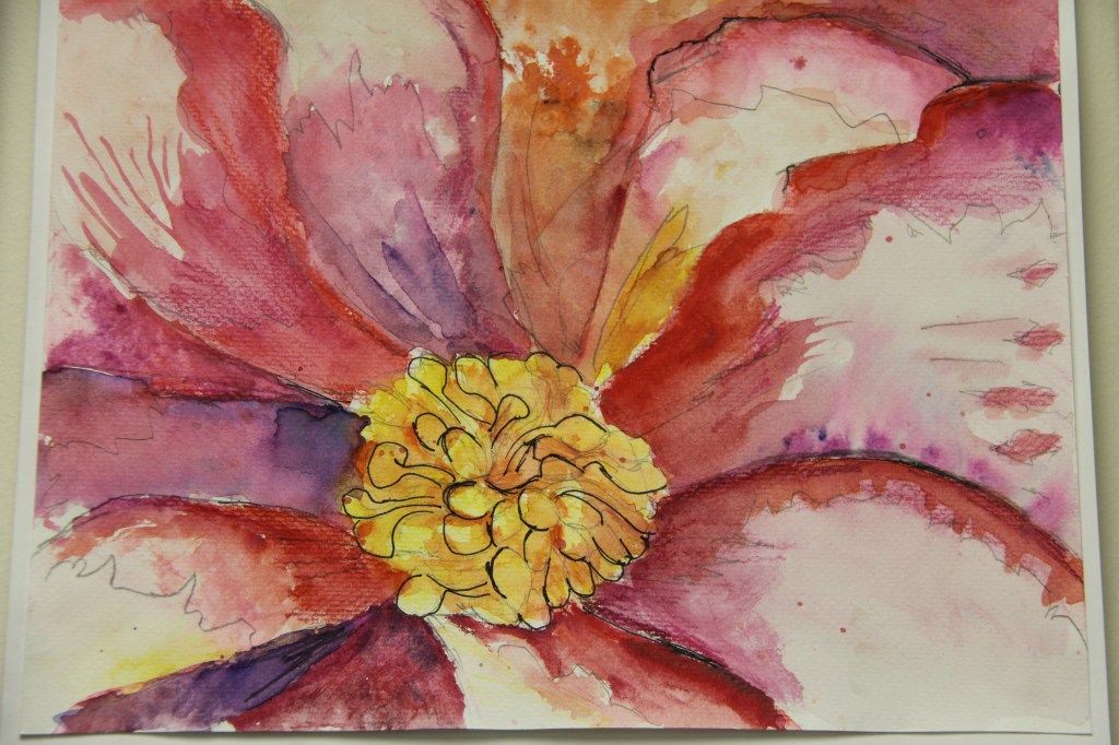 When I walked over to view the wall gallery of Bethlehem Academy student art, I wondered about the stories behind their creations. What of the untitled piece featuring three masks? What of the colorful abstract “Crazy Minds”? What of “St. Olga of Kiev”? Or “Wóohitike ‘Courage’”? I reacted to each. I thought of the masks we all wear, of mental health, of the war in Ukraine, of Indigenous peoples.