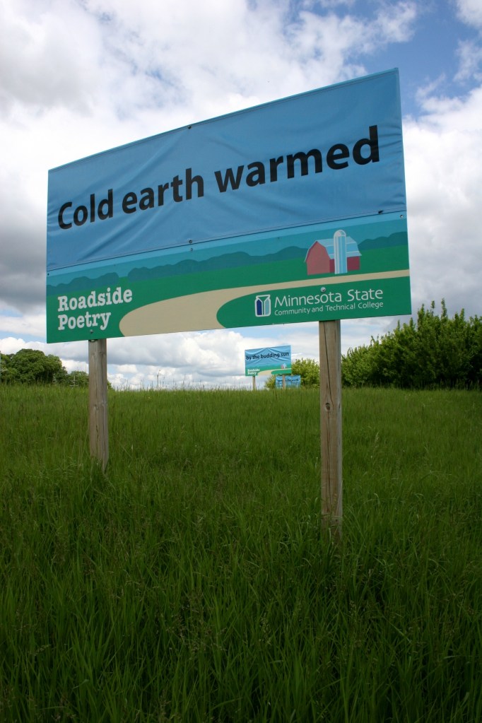 The first of my four Roadside Poetry billboards in a stretch of ditch along North Tower Road in Fergus Falls.