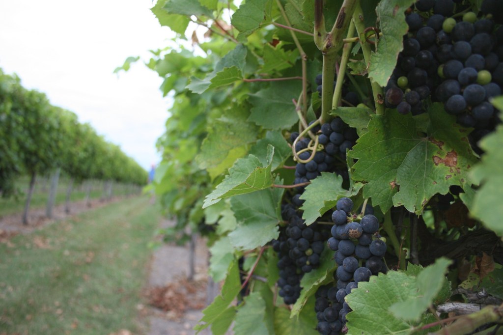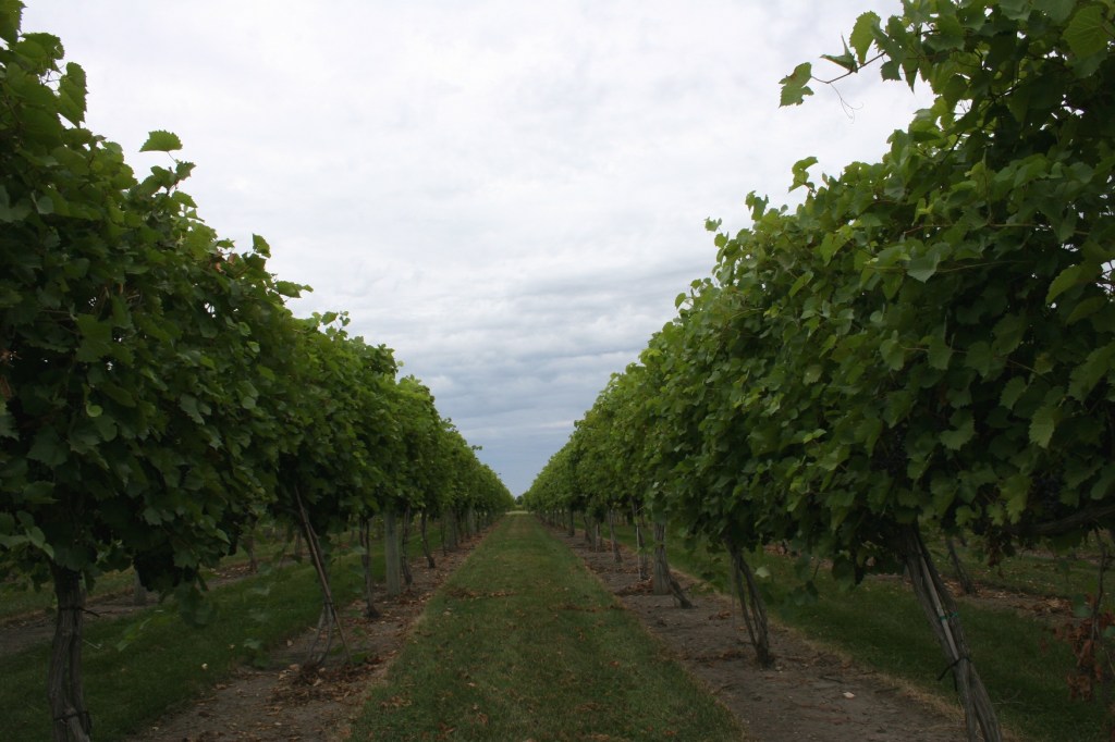 Indian Island's vineyard covers 13 acres. Here's a view between rows of plants.