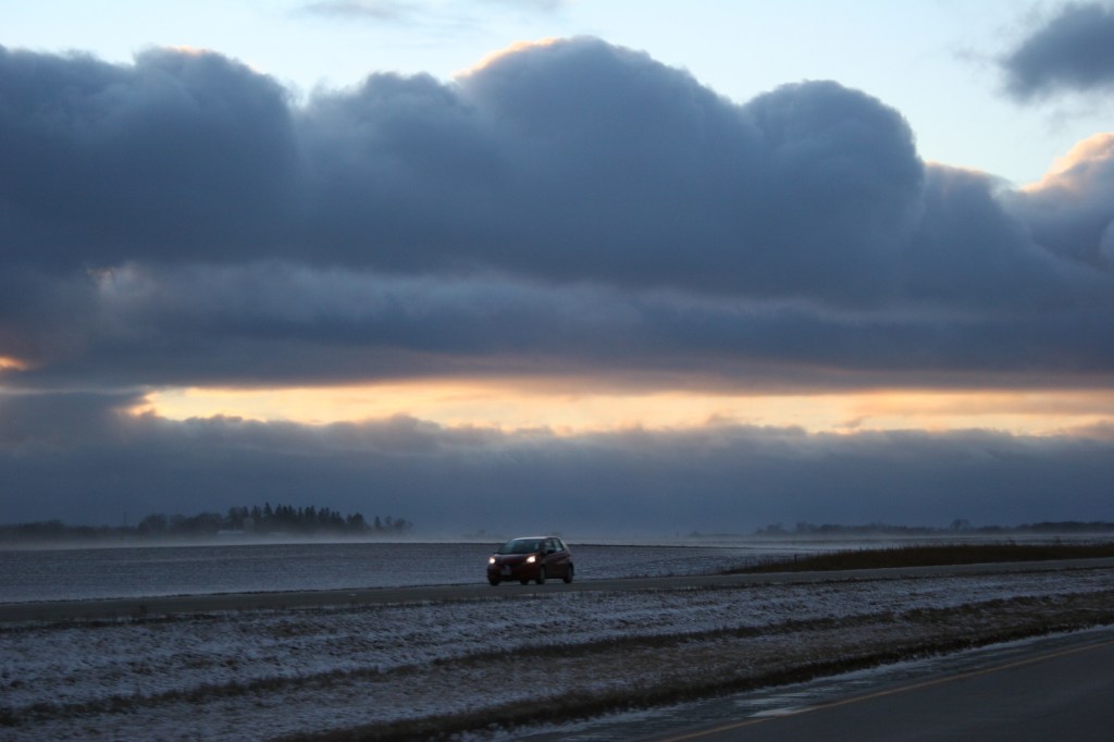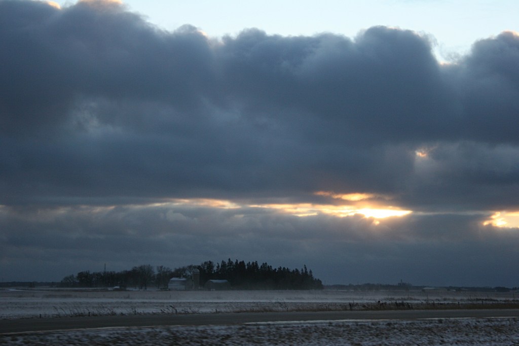 Then, thankfully, as we drove west toward Faribault, with less open space and farm sites breaking the wind, visibility improved.