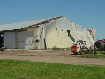 IN VESTA, WHERE A SERIES OF DOWNBURSTS with wind speeds of 90 – 100 mph caused significant damage and downed trees, members of St. John’s Lutheran Church are planning to repair their church. The south half of the church roof was lifted off and slammed against the bell tower, according to my uncle, Milan Stage, a church member. The tower was cracked at the base and will need to be taken down, he says.
