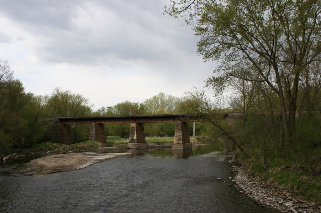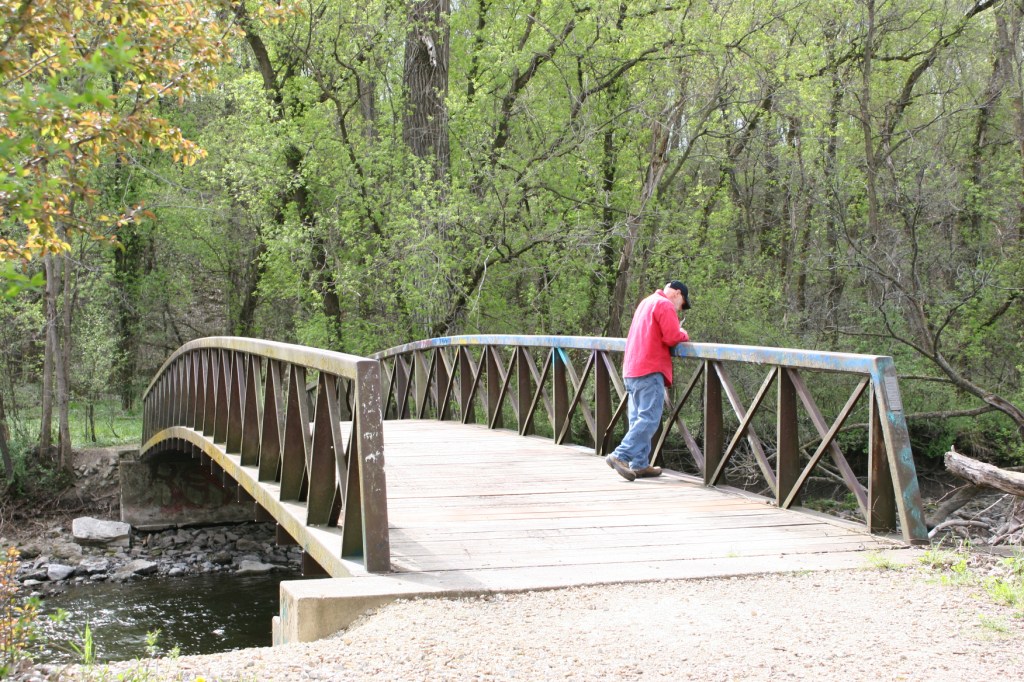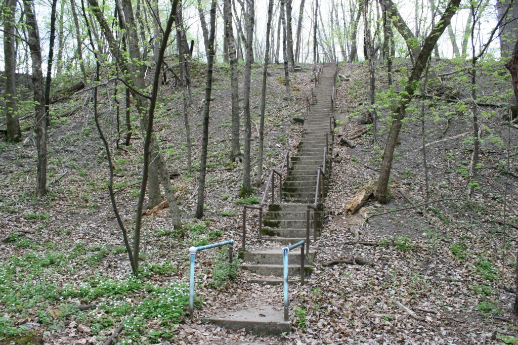 I followed a narrow dirt trail through trees and underbrush in Teepee Tonka Park to reach a good viewing spot of the viaduct underside. From that perspective next to the train tracks, I observed the way patterns and lines repeat to build a strong structure that has withstood the test of traffic and of time. The bridge was rehabilitated, the roadway widened in 2008-2009.