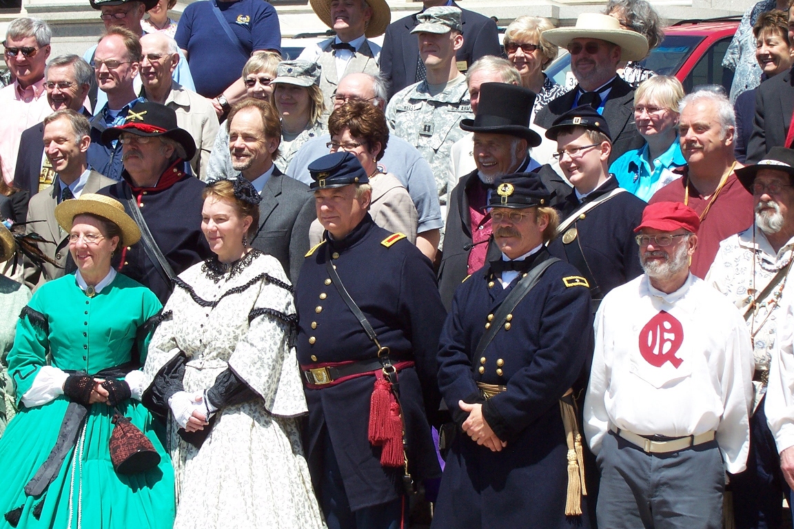 WITH TELEVISION CAMERAS around him, Brandon Peeters of Owatonna led the Pledge of Allegiance during a Civil War Sesquicentennial Day program at the Minnesota State Capitol on Wednesday.