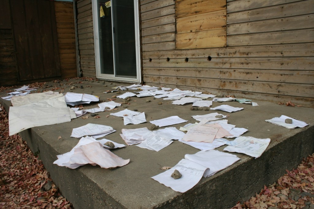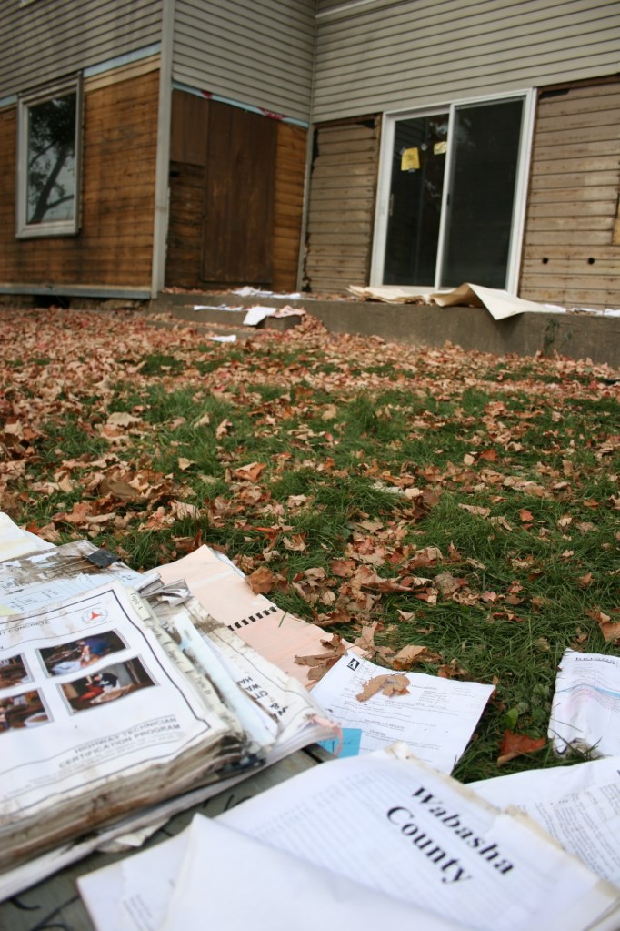 TALK ABOUT GOVERNMENT paperwork… well, you ought to see what I saw in flood-ravaged Zumbro Falls on Sunday afternoon. Scattered across the lawn and the patio of an uninhabitable home next to the combination fire hall and city hall, sheets and sheets and sheets of paper lay, weighted by stones, drying in the open air.